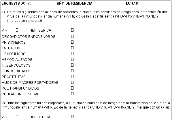 de conocimiento sobre: 1. Cuales son las poblaciones de riesgo para VIH y Hepatitis sérica (considerando a ésta última como la provocada por los virus B, C, D, o NANB). 2.