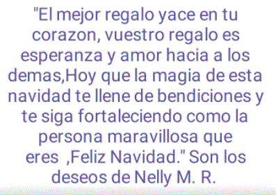 Para Marcelino: Que pases una feliz navidad, en compañía de tu familia. Atte. Lic. Enf. Sylvia Obando - 23 Dic 2021 |